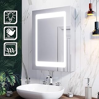 Talos Mirage Armoire de Toilette avec éclairage LED, Verre, Blanc Neutre, 50x 60 cm