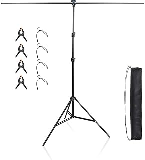 Neewer Kit de Support de Toile de Fond en Forme de T, Support Trépied Réglable de 2m et Barre Transversale de 1,5 m de Large avec 4 Clips de Fond et Sac de Transport pour Photographie Vidéo en Studio