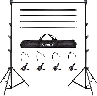 UTEBIT Support de toile de fond pliable réglable 2,8 x 3 m (H x l) Système de support de barre transversale robuste pour photographie studio photo