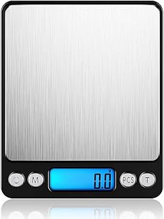 ORIA Balance de Poche Numérique, 500g/ 0.01g Mini Balance de Cuisine avec 2 Plateaux, Écran LCD Rétroéclairé, Balance Multifonctionnelle de Haute précision de Bijoux avec 6 unités, PCS, Tare Fonction