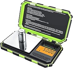 Balance numérique électronique, mini portable 25kg/5g Crochet de poids de chaîne clé numérique de poche électronique. Conception d'arrêt automatique, économie d'énergie et respect de l'environnement. Écran LCD clair et fonction de verrouillage, facile à lire et à enregistrer les chiffres. 35,94€ Prix de comparaison. Balance numérique de poche 200g/0.01g, mini balance alimentaire avec poids de calibrage de 50g, pour la cuisine, les poudres, les herbes, les bijoux, les pièces de monnaie (batterie incluse) Vert 331 18,75€