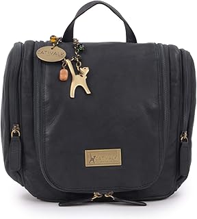 CATWALK COLLECTION HANDBAGS - Cuir Véritable - Sac de Lavage/Trousse de Toilette Voyage/Sac de Toilette/Trousse a Cosmétique/Sac Rangement Maquillage pour Femme - Maisie - Noir AQ