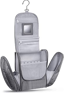 Trousse de toilette femme voyage à suspendre de grande taille avec sac à linge sale et miroir Sac à cosmétiques XXL trousse de toilette homme vanity rigide sac de voyage femme (Gris)