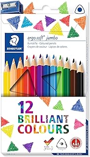 Staedtler Ergosoft Jumbo 158 - Etui Carton 12 Crayons De Couleur Triangulaires Gros Module Assortis + 1 Taille-Crayon 510 90 Offert