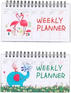 YEAHIBABY Cahier à spirale,Calendrier de cahier Cahier de planificateur hebdomadaire, 2 pièces (éléphant et flamant rose)