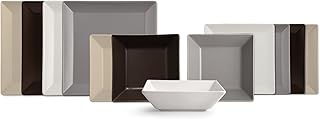 H&H Square Service de Table, en grès, Multicolore, 12 unités