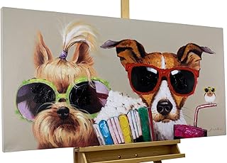 KunstLoft® Peinture Acrylique sur Toile 'Kiki, Jack Matt' 120x60cm | Tableau Acrylique Peint à la Main | Toile sur Cadre en Bois | Chiens Oiseau Multicolore Lunettes Gai Multicolore