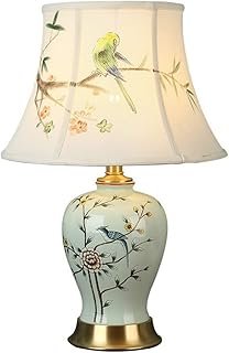 KESAI HomeDeco Lampes de Table Lampe de Chevet Céramique Moderne, Lampes de Table Debout avec Abat-Jour en Tissu pour Salon Chambre, Lampes de Lecture en Laiton H65 pour Bureau Salle d'étude