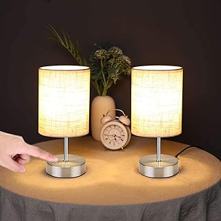 Lightsjoy 2 pcs Lampe de table Tactile Dimmable Avec Ampoule E14 Abat-jour en Tissu Beige Lampe de Bureau pour Chevet Bar Chambre Salon Hotêl Café Chambre d'Enfant Salon Bureau (Ampoule Blanc Chaud)