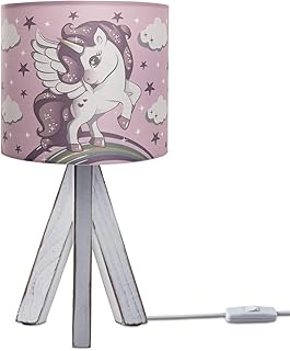 Paco Home Lampe Enfant LED Chambre D'enfant Lampe Bureau Lampe De Chevet Licorne E14, Pied de lampe: Lampe de table Blanc + Ampoule, Abat-jour: Rose (Ø18 cm)