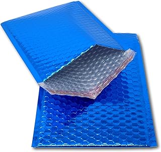 Switory Lot de 25 enveloppes matelassées métallisées à bulles - Format A5 - 15,2 x 22,9 cm - Bleu glacier