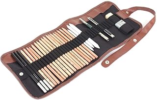 Lot de 18 Esquisse De Crayons De Charbon De Bois Gomme Crayon Couteau Dessin Crayon Croquis Avec Ensemble De Roll Up Toile