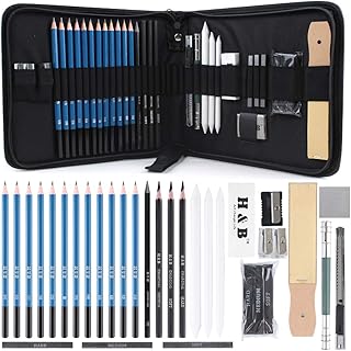 34Pcs Esquisse et Dessin Crayon Kit Sketching Kit Graphite & Charcoal Crayons, gomme, taille-crayon, Stick, Kit de Croquis Dessin Kit d'Art élémentaire Professionnel Avec Carnet de Croquis et Sac de R