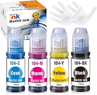 Encre 104 Ecotank Haute qualité Compatible avec Epson ET-2710 ET-2711 ET-2712 ET-2714 ET-2715 ET-2720 ET-2721 ET-2726 ET-4700 (Pack X1)