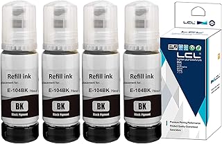 LCL Imprimante Bouteille d'encre Compatible 104 C13T00P140 (4-Pack Noir) Remplacement pour Epson ECOTANK ET-2710 ET-2711 ET-2714 ET-2715 ET-2720 ET-2726 ET-4700