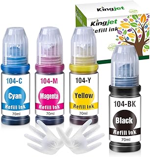Kingjet 4 pack Cartouches d'encre Compatibles avec Epson 104 EcoTank Bouteille pour Epson ET-2710 ET-2711 ET-4700 ET-2712 ET-2714 ET-2715 ET-2720 ET-2726 (noir,cyan,jaune,magenta)