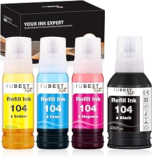 IUBEST 104 Compatible pour Epson 104 Ecotank Bouteille d'encre pour Epson EcoTank ET-2710 ET-2711 ET-2712 ET-2714 ET-2715 ET-2720 ET-2726 ET-4700, Multipack (Noire, Cyan, Magenta, Jaune)