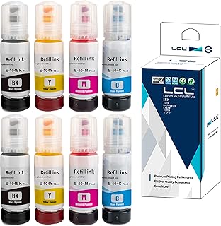 LCL Imprimante Bouteille d'encre Compatible 104 C13T00P140 (2Noir 2Cyan 2Magenta2Jaune) Remplacement pour Epson ECOTANK ET-2710 ET-2711 ET-2714 ET-2715 ET-2720 ET-2726 ET-4700