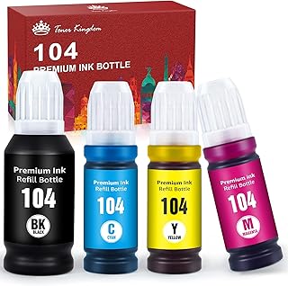 Toner Kingdom 104 Bouteille d'encre Remplacement pour Epson 104 Ecotank Encre Compatible avec Epson EcoTank ET-2710 ET-4700 ET-2711 ET-2712 ET-2714 ET-2715 ET-2720 ET-2710 Unlimited ET-4700 Unlimited